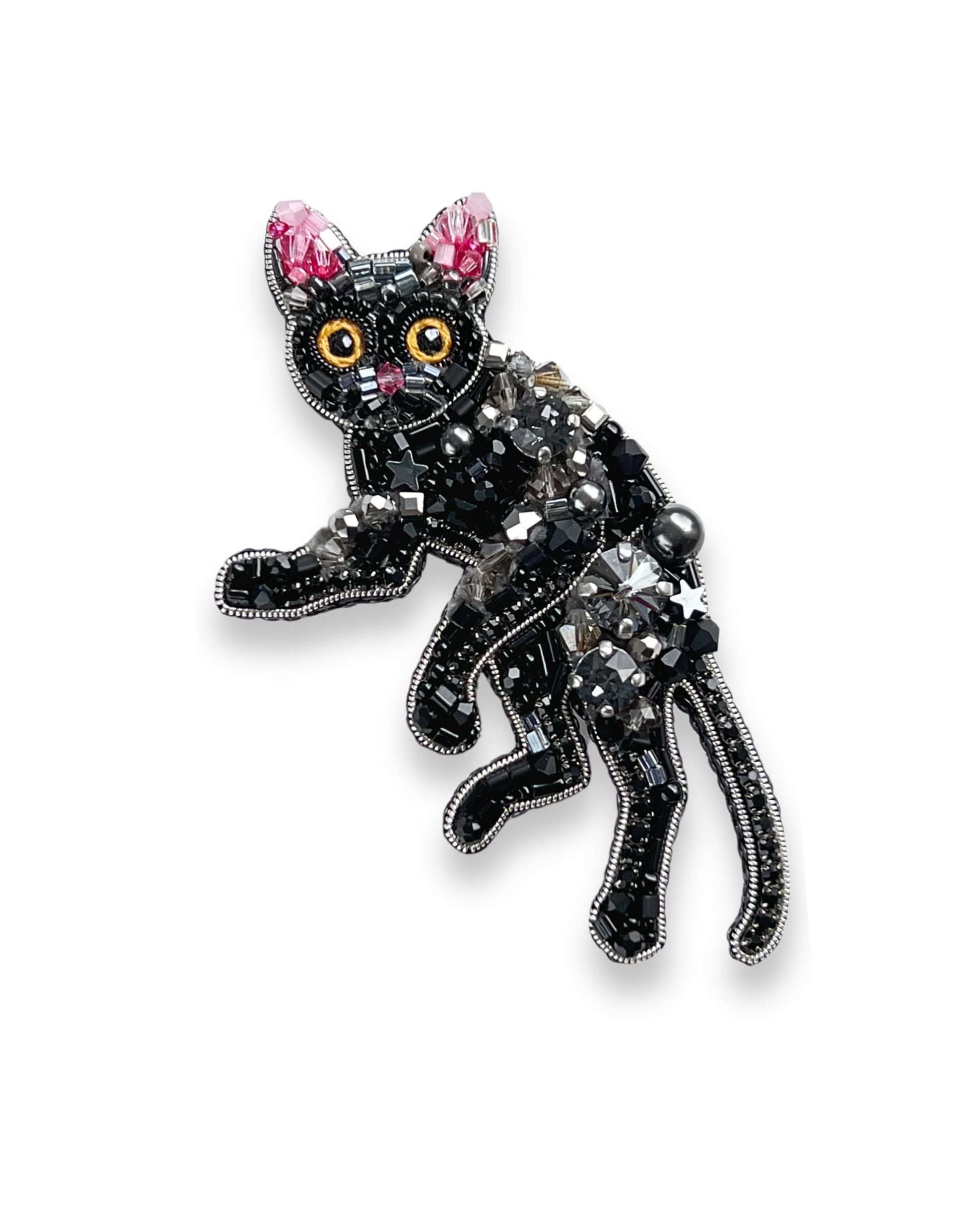 This handmade black and grey Cat brooch is inspired by the movie Flow – a beautiful reminder that love, connection, and kindness are what truly matter. Carefully made by hand, this brooch has a unique charm and personality.
