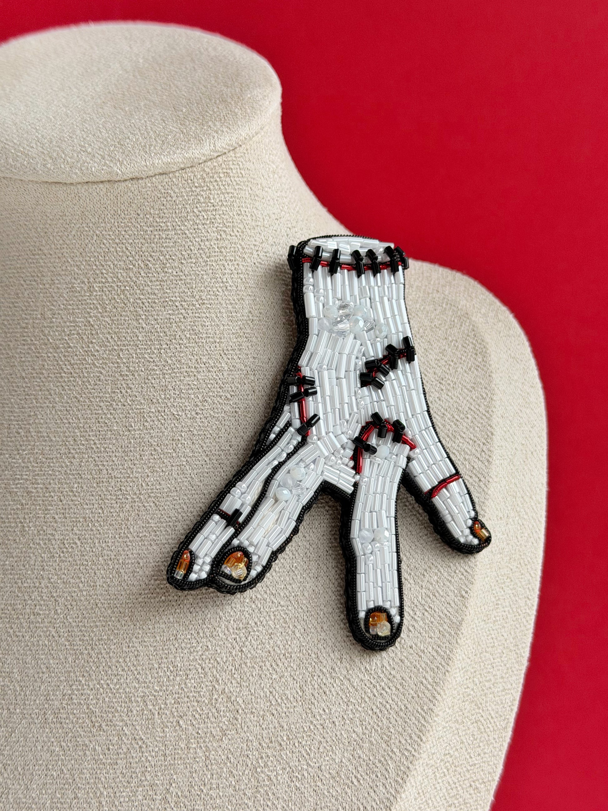 Meet your little quirky companion - Thing, a hand brooch inspired by the Addams Family.